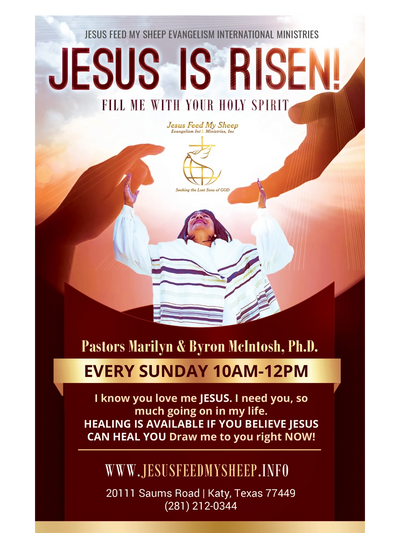 Apostle Marilyn McIntosh is founder of “Jesus Feed My Sheep” Evangelism International Ministries, Inc., mother Church in Katy, Texas, together with her husband, Byron McIntosh, parents of 6 children, 9 grandchildren, and 4 great-grandchildren. Currently Apostle Marilyn McIntosh is celebrating 24 years of ministry.